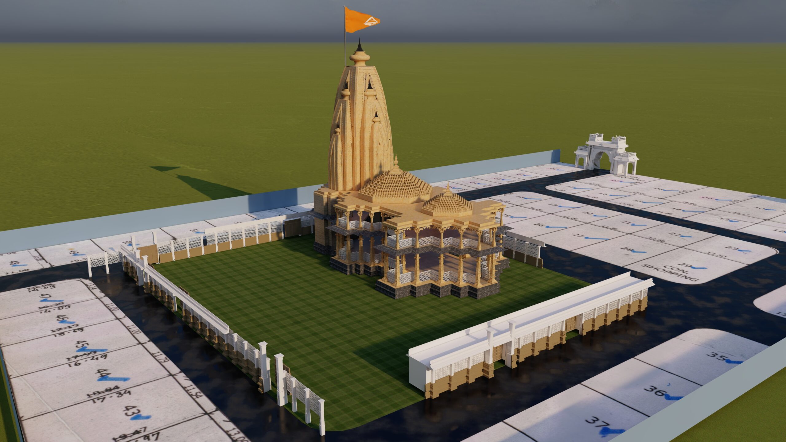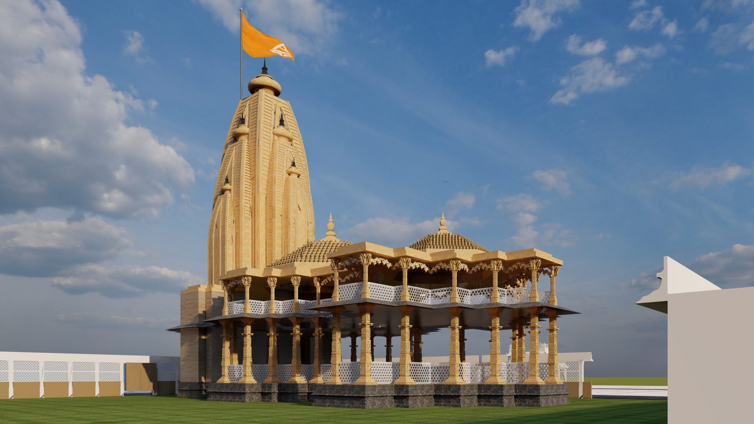 I designed this temple with inspiration drawn from Nagara-style architecture, featuring an intricately carved Shikhara that rises as the focal point of spiritual elevation. The temple is constructed using Jaisalmer sandstone textures to embody purity, permanence, and regional authenticity. I integrated Mandapas with ornate pillars, detailed jaali work for ventilation, and symmetrical layers to ensure harmony and balance. Following Vastu Shastra, the sanctum is east-facing for divine alignment. Elevated plinths and circumambulatory paths enhance ritual functionality. My design reflects timeless Indian temple aesthetics while incorporating modern construction detailing for durability and spiritual grandeur.