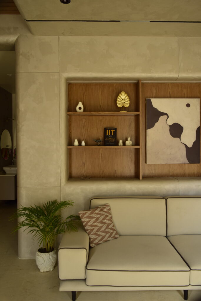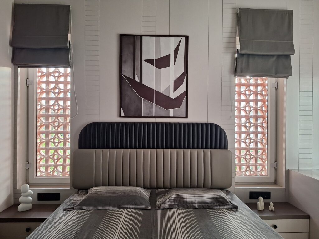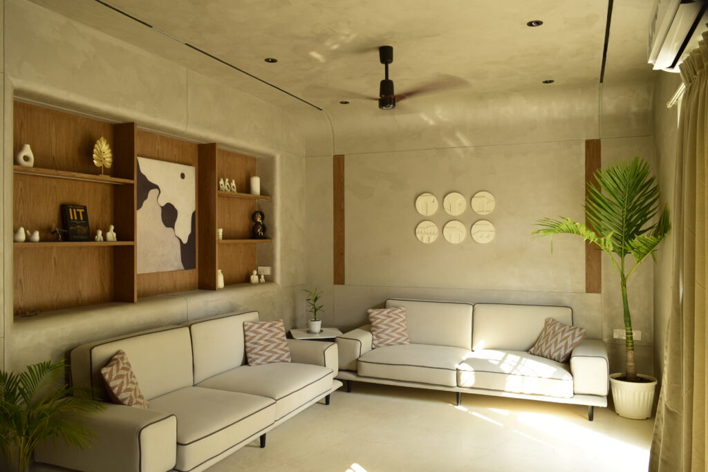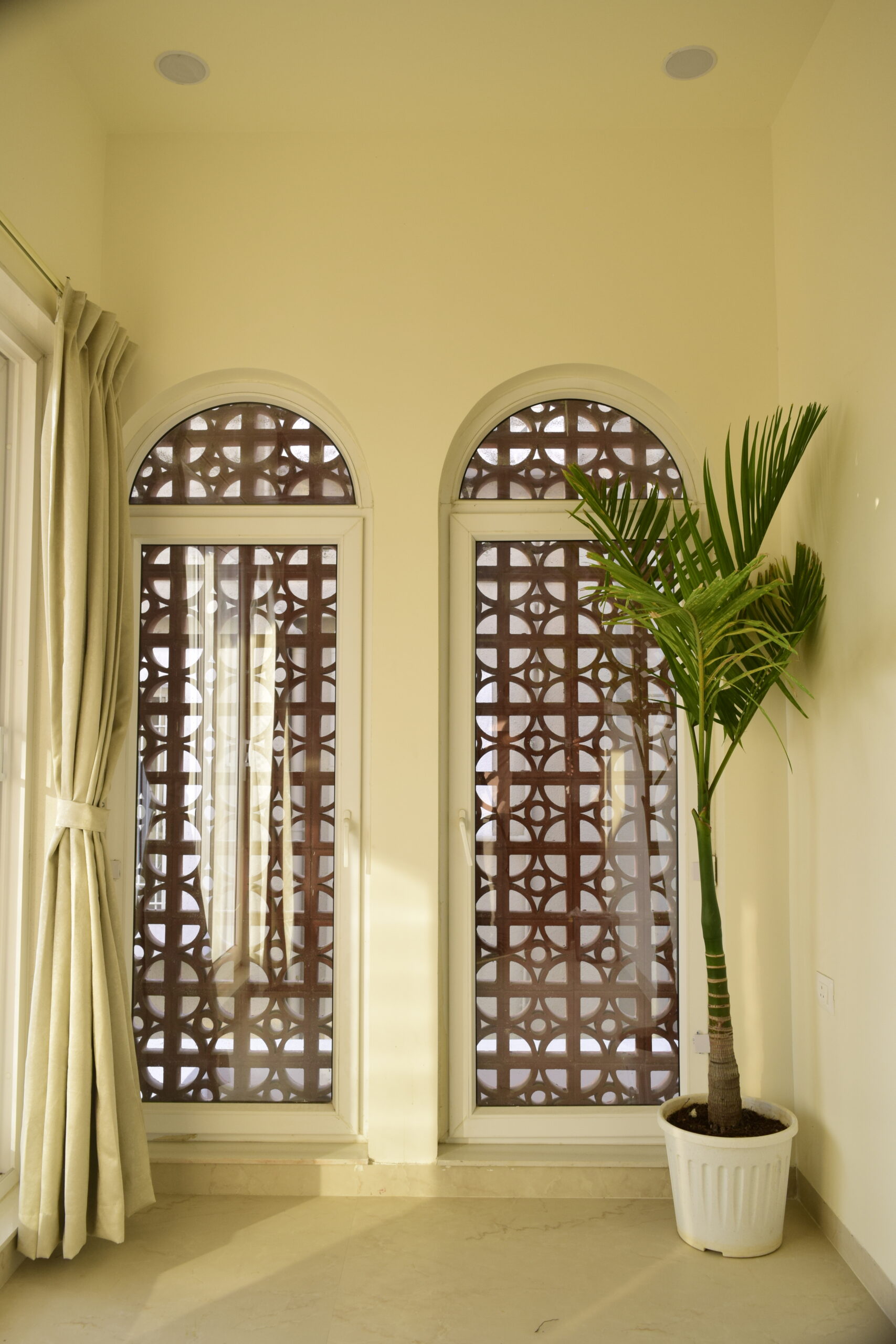This building represents a harmonious blend of modern and traditional architectural principles, showcasing a contemporary facade enriched with traditional terracotta jaali work. The clean geometry emphasizes simplicity, while the framed composition adds depth and elegance to the structure. Key materials used include terracotta, natural stone, glass, and concrete, combining durability with aesthetic appeal.