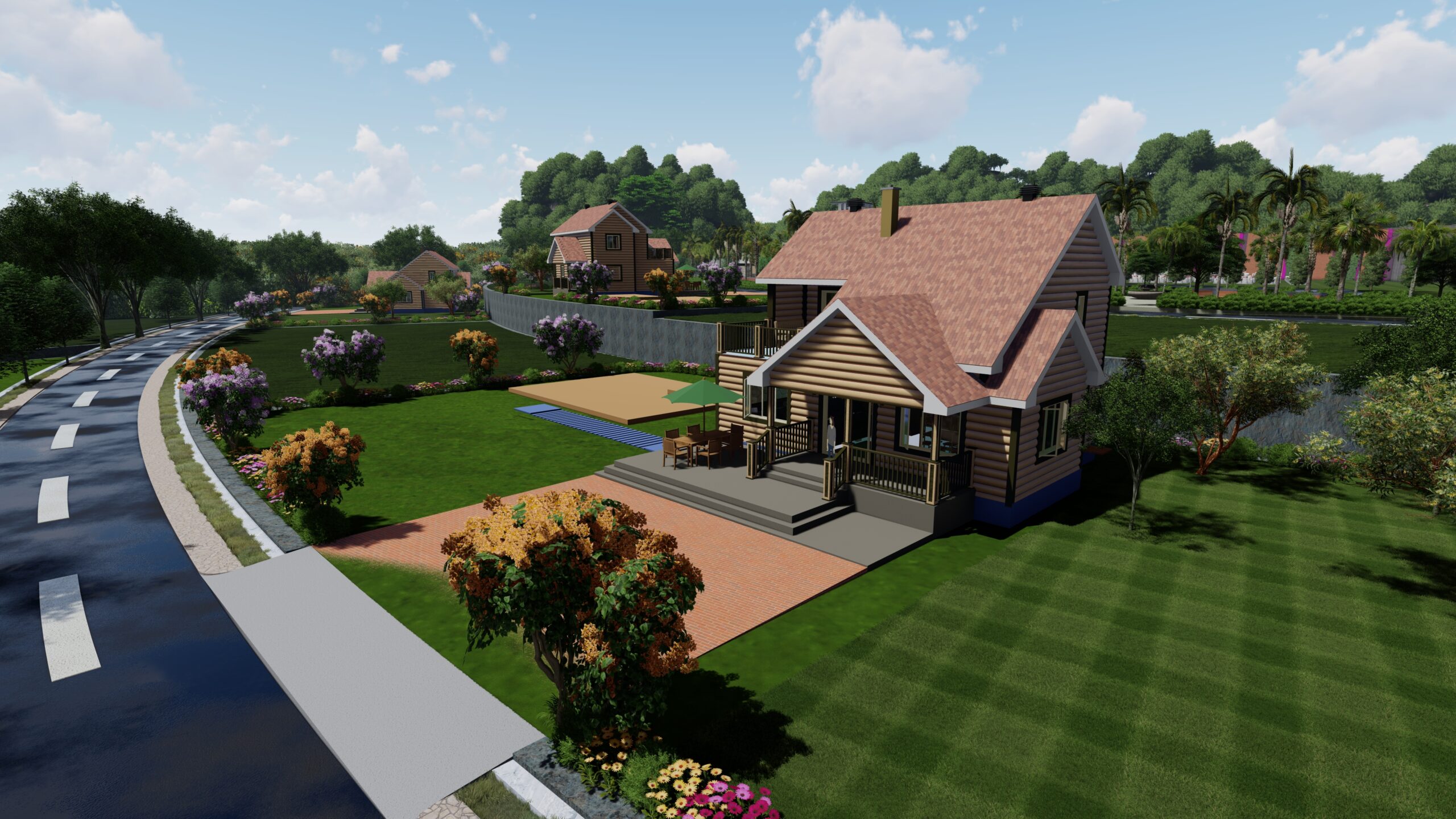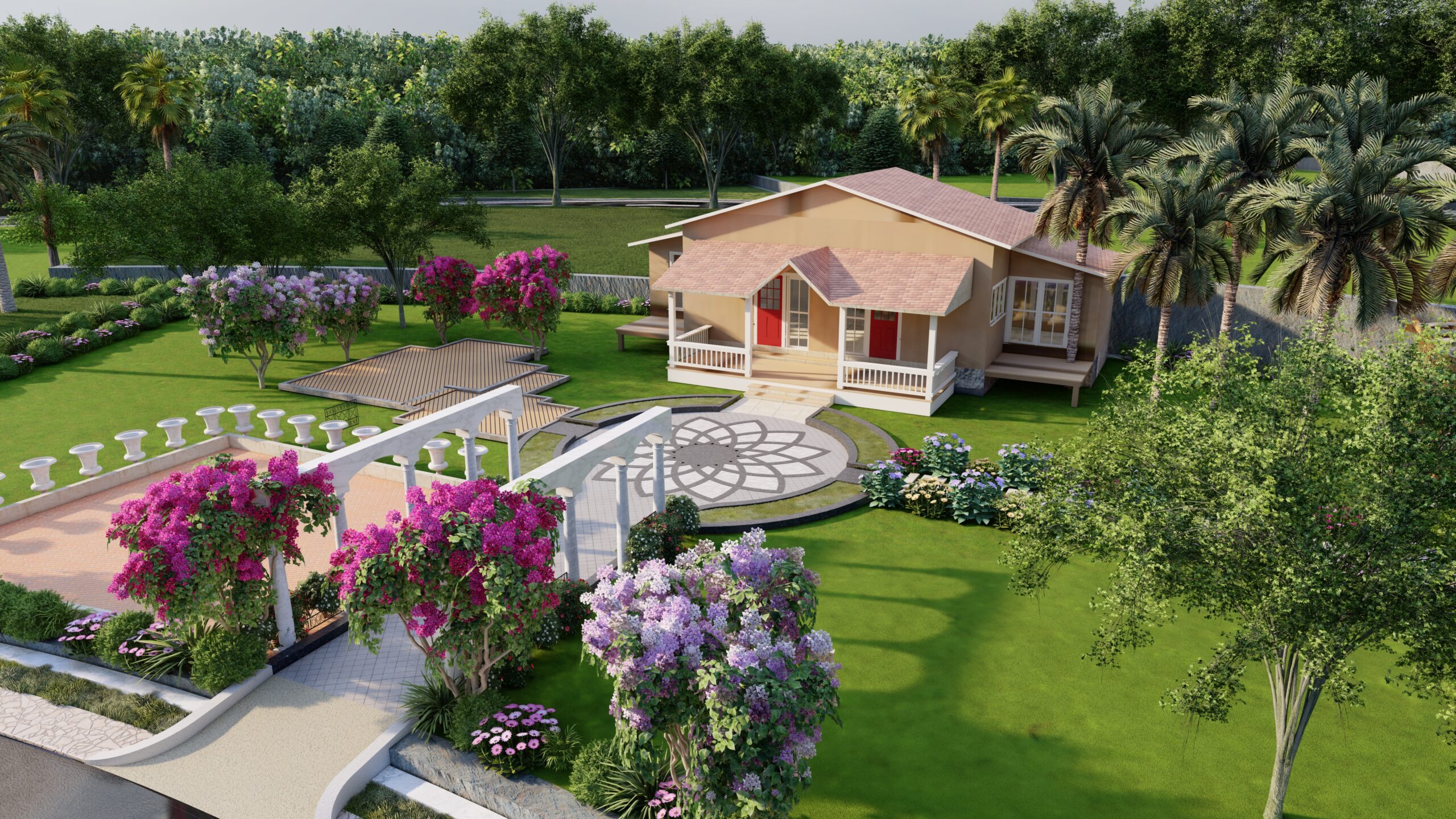 This contemporary villa, designed by me, reflects a harmonious blend of modern minimalism and vernacular architecture. The structure features clean lines and an open-plan layout, emphasizing transparency through floor-to-ceiling glass panels that seamlessly integrate interior spaces with nature. Locally sourced stone cladding enhances thermal performance and adds a rustic charm, while timber elements on the façade and sloping roof promote warmth and contextual relevance. Grounded in biophilic design principles, the home fosters a strong connection to its lush landscape, complemented by formal gardens and axial symmetry in layout. Passive design strategies ensure natural lighting, ventilation, and environmental sustainability throughout the structure.